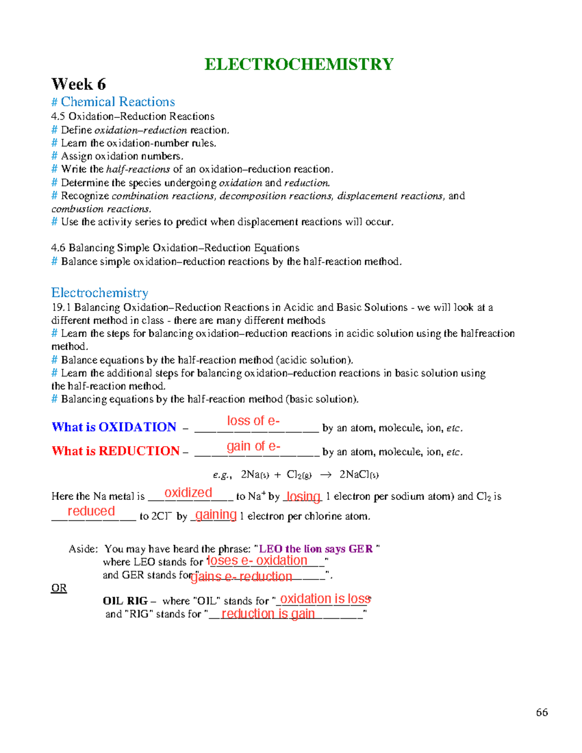Guided Reading 6 Electrochem Part1 Week 6 Electrochemistry Week 6 Chemical Reactions 4 Studocu